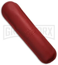 An impressive interpretation of the classic swinguard from AGA Campoloin. This knife measures 13 inches when opened and has a stylized swinguard. This knife features a polished bayonet stainless steel blade and a brass shield-shaped firing button. The rich stag handle is offset with brass pins over brass liners. The blade has fast, smooth action in spite of its size. The unique swinguard design gives the knife an almost medieval look. Includes a soft leather storage pouch.