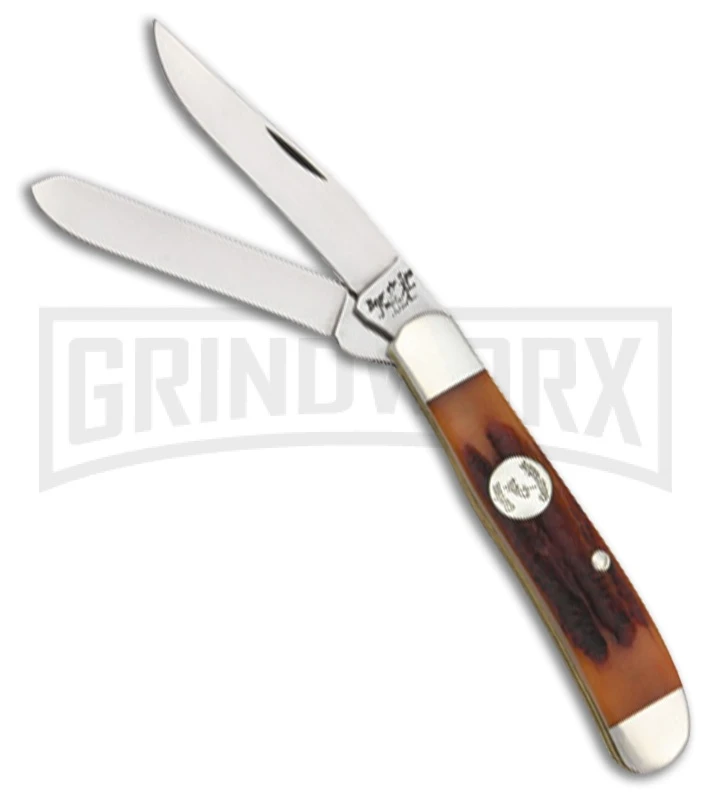 Bear & Son CRSB07 Red Stag Bone Mini Trapper Knife – Satin Plain