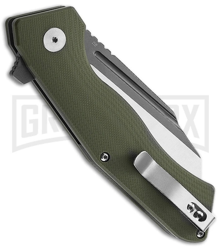 - Ergonomic OD green G-10 handle scales.