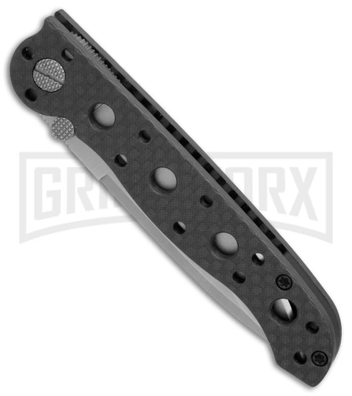 Add a rare discontinued CRKT folder to your collection with the M16-01F. The CRKT M16-01F features a hollow ground spear point blade with a plain edge and a satin finish. The blade is easily opened with the dual thumb studs. The Teflon bearings at the blade pivot and an adjustable pivot screw allow for perfect blade action.
