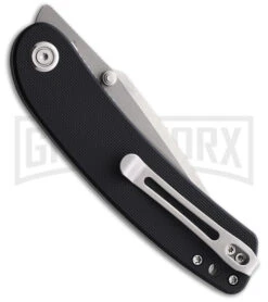 Douk-Douk Les Chromes Folder is a thin pocket knife with a simple design and reliable performance. It has a carbon steel blade and silver finished folded steel handle with bail loop. The front handle is etched with Douk Douk artwork and the blade has scroll etching.