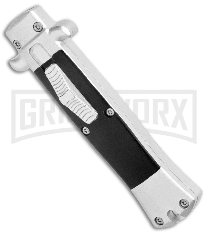 Enzo Stiletto Mini Black W/ Silver Bolsters OTF Automatic Knife – Satin Plain