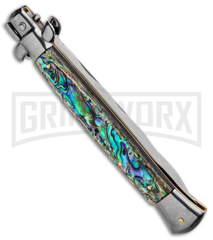 Frank B. 11″ Italian Stiletto Abalone Automatic Knife – Kris Polish