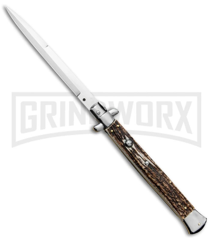 Frank B. 13″ Italian Stiletto Stag Automatic Knife – Bayonet