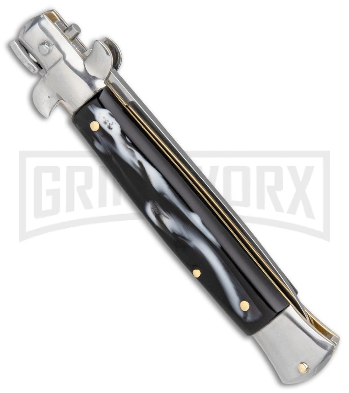 Frank B 9″ Italian Stiletto Sim Dark Horn Automatic Knife – Flat