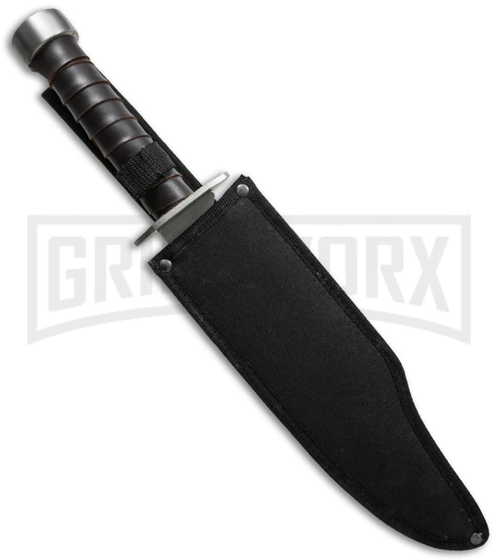 Frost Cutlery Survival Bowie Leather Wrapped Fixed Blade Knife – Satin Plain
