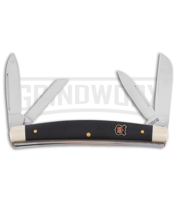 The Klaas Congress is a traditional pocket knife for everyday carry. The stainless steel, coping, sheepsfoot, and pen blades have satin finishes and nail nick openers. The handle is made of smooth black Delrin with nickel silver bolsters and an inlay shield. Like most traditional pocket knives, it has a slip joint.