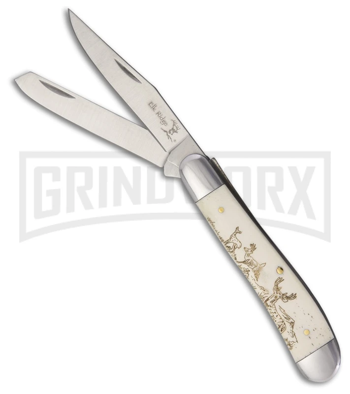 The Master Cutlery Elk Ridge Deer Trapper is a traditional pocket knife for everyday carry. The stainless steel, clip point and spey blades have satin finishes and nail nick openers. The handle is made of smooth bone with deer artwork and engraved stainless steel bolsters. Like most traditional knives, it features a slip joint.