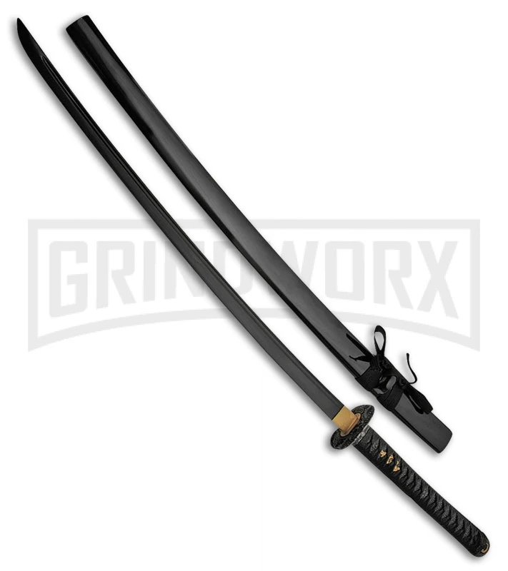 The Rite Edge Fantasy is a sword for adding to your collection or using to fight the undead. The stainless steel blade has a black finish. The handle is wrapped in black cord and features a fantasy blade collar and tsuba. It comes with a black wood scabbard.