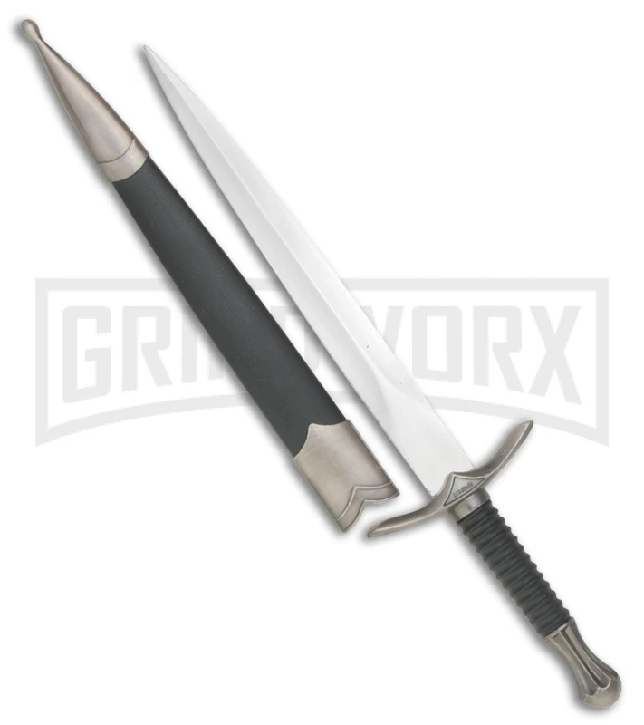 The Rite-Edge Medieval Celtic Dagger CN210636 is a dull edged dagger used for practice or reenactment. The stainless steel blade is a bead blast finished dagger with a dull edge. Sculpted cast metal, black handle, guard and pommel. Also includes a matching scabbard.