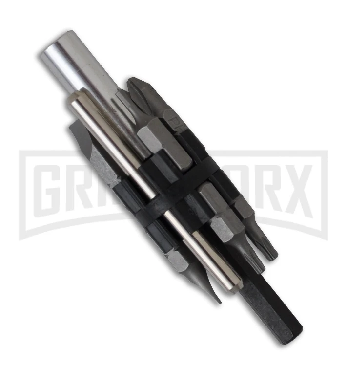 The Schrade Extreme Survival SCHF2 fixed blade knife is a big knife that features a single piece drop point style blade and handle made from 1070 stainless steel. The 7.5″ blade is partially serrated and the handle has diamond pattern knurling for a confident grip. Unscrewing the handle end reveals a driver tool with flat head (3/32″, 3/16″, 1/4″), Phillips (PH#0, 1, 2), Torx (10, 15, 20), and Allen (5/64″) tips. The O-ring keeps moisture out of hollow handle when tightened appropriately. Includes a ballistic nylon sheath.