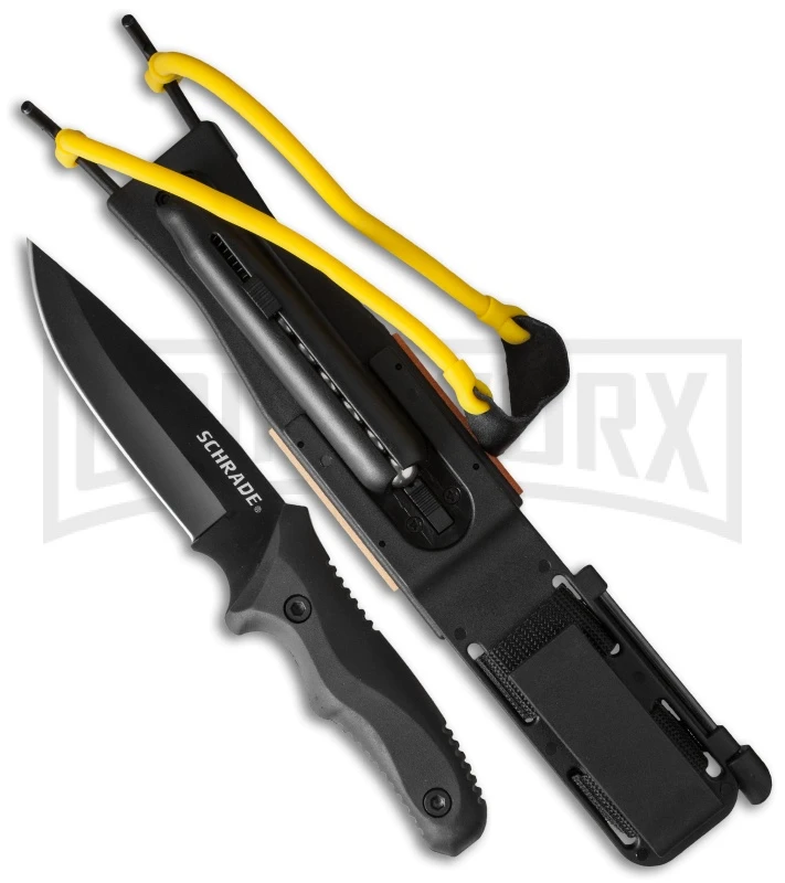 Schrade SCHF39 Guide Master Sling Shot Fixed Blade Knife – Black Plain