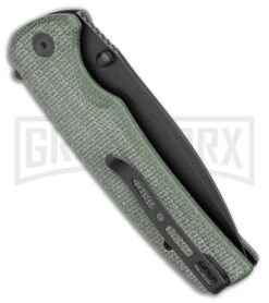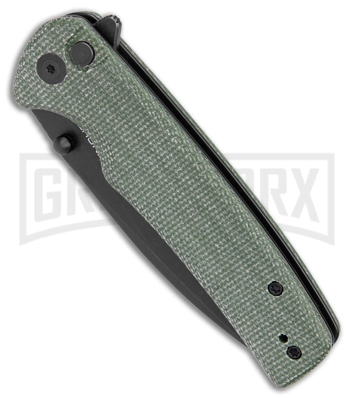 - Texturized green micarta handle for a comfortable grip.
