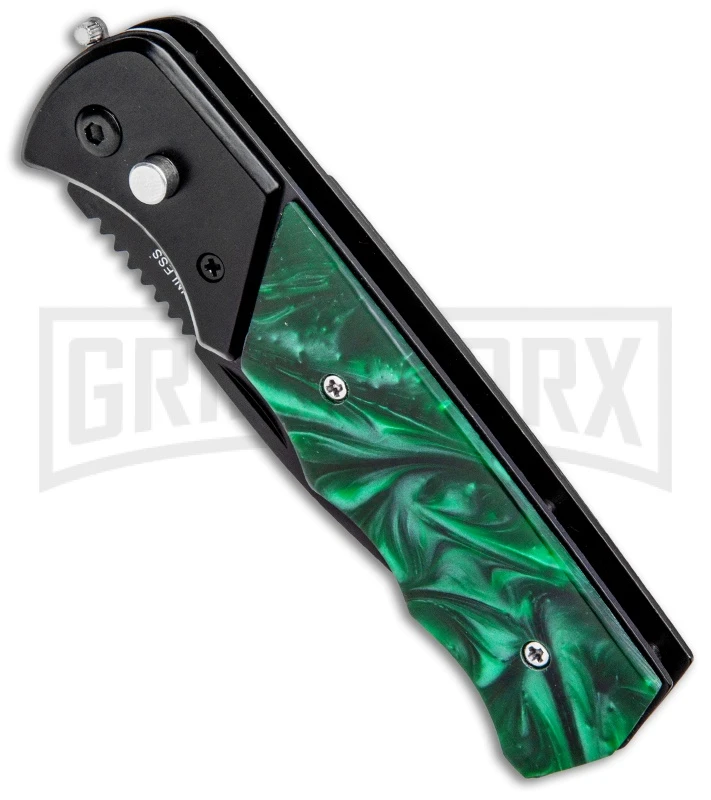 Super Knife Dingo Green Acrylic Automatic Knife – Black Serr