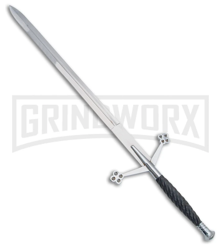 The Tallen Claymore is a replica sword for recreational and novelty uses. The Claymore features a satin finished, stainless steel blade. The handle is made of knurled wood with a nickel silver guard and pommel. Secure the blade using the black leather scabbard.