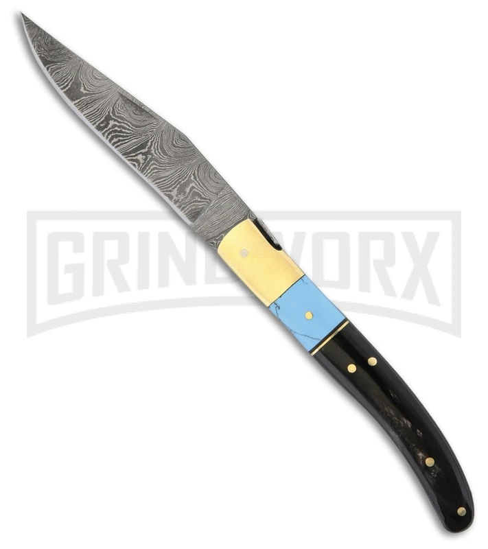 Tallen Helper Black Horn Pick Lock Folding Knife – Damascus Plain